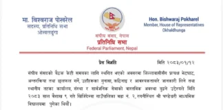 काठमाडौँ । आफ्नै अभिव्यक्तिका कारण विवादमा तानिएका राष्ट्रिय स्वतन्त्र पार्टी रास्वपा का सांसद विश्वराज पोखरेलले माफी मागेका छन् । शनिबार विज्ञप्ति जारी गरी पोखरेलले आफ्नो...