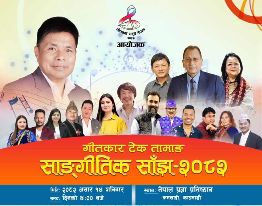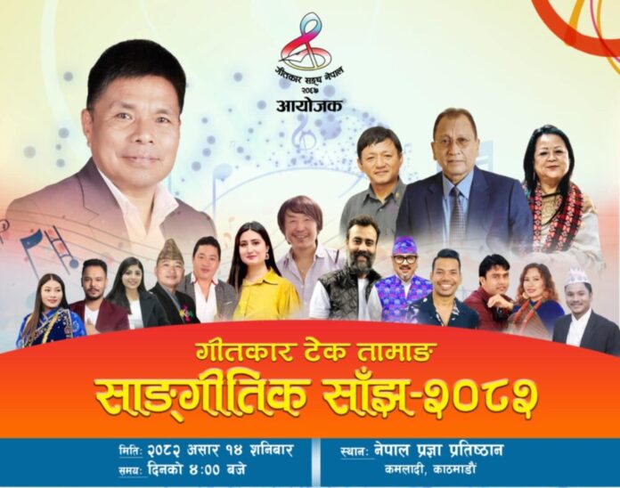 प्रतिष्ठानको प्रेक्षालयमा आगामी असार १४ गते शनिबार, दिनको ४ः०० बजेबाट प्रारम्भ हुने उक्त एकल साँझ कार्यक्रमलाई ‘गीतकार टेक तामाङ सांगीतिक साँझ – २०८२’ नाम दिइएको छ ।