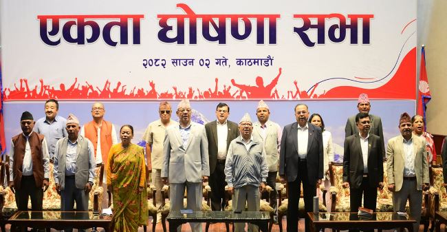 काठमाडौं । काठमाडौंकोराष्ट्रिय सभा भवनमा आयोजित विशेष कार्यक्रममा नेकपा एकीकृत समाजवादी एस र नेकपा राष्ट्रिय एकता अभियानबीच पार्टी एकता घोषणा गरिएको छ। यस सँगै वामदेव गौतम माधव नेपाल नेतृत्वको एकीकृत समाजवादी पार्टीका वरिष्ठ नेता बनेका छन्। तर उनी वरिष्ठ नेता भए पनि उनको वरीयता भनें तेसो्र स्थानमा रहने भएको छ । वरीयतामा पार्टी अध्यक्ष माधव नेपाल पहिलो, सम्मानित नेता झलनाथ खनालदोस्रो र तेस्रो वरीयतामा वामदेव गौतम रहने सहमति भई सकेको छ ।