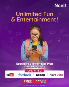 काठमाडौं । एनसेलले विद्यार्थीहरूका लागि विशेष रूपमा डिजाइन गरिएको ‘सधैं अन रिन्युअल’ प्लानहरु संचालनमा ल्याएको छ ।