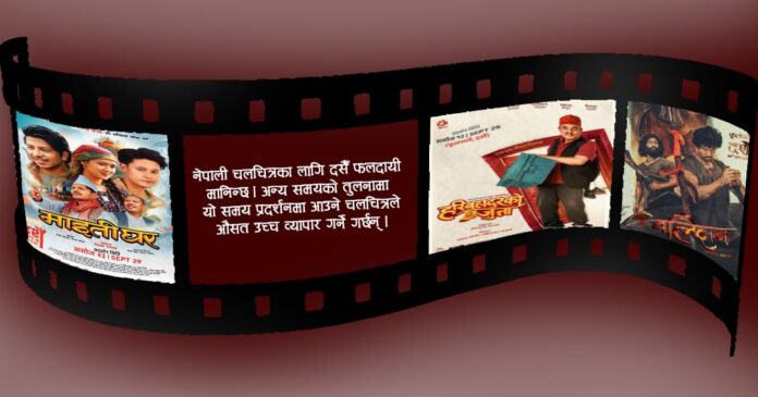 यसैगरी, वितरक किरण श्रेष्ठका अनुसार चलचित्र क्षेत्रका लागि दसैँविशेष शुभ त मानिन्छ नै । तर नेपाली चलचित्रका लागि दसैँबाहेक पनि हरेक चाडपर्व विशेष हुने उहाँको भनाइ छ । ूविशेषगरी चलचित्र मनोरञ्जनकै लागि बनाइन्छ । त्यसकारण ३६५ दिन नै चलचित्रले बजार पिट्नैपर्छू, वितरक श्रेष्ठ भन्नुहुन्छ, ूअन्य चाडपर्वको तुलनामा दसैँमा चलचित्र हेर्न आउने दर्शकको चाप बढी हुन्छ । दसैँको समयमा पारिवारिक कथावस्तुमा निर्माण गरिएका चलचित्रले बढी दर्शक पाउने गरेको छ । चलचित्र राम्रो बन्यो भने वर्षभरिनै चल्छ ।ू