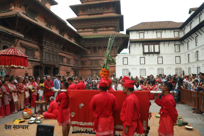 गोरखाबाट धादिङको जीवनपुरसम्म दसैँघरका पूजारीसहित मगर जातिका छ जनाले ल्याउने र त्यहाँबाट काठमाडौँको जमलसम्म काठमाडौँबाट गएका ब्राह्मण जातिका छ जनाले ल्याउने परम्परा रहेको हनुमानढोका दरबार हेरचाह अड्डाका कार्यालय प्रमुख काजीमान प्याकुरेलले जानकारी दिए।