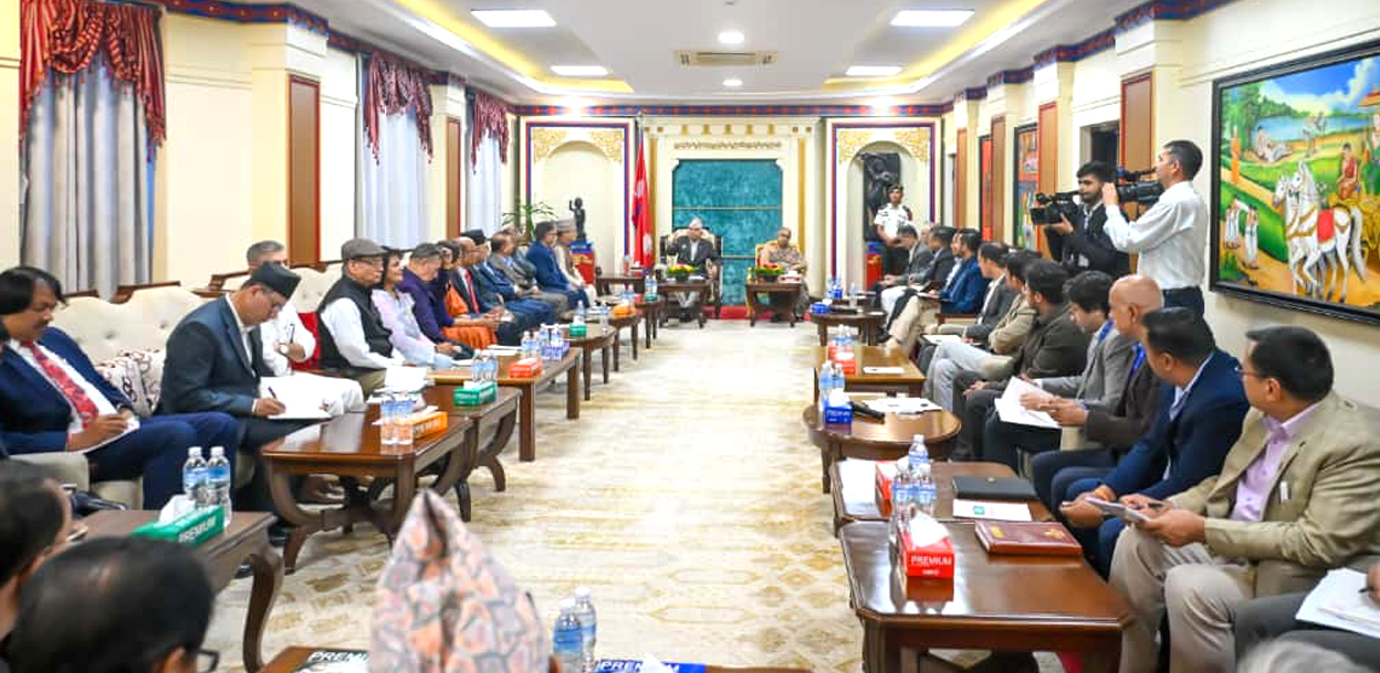 अन्तरिम सरकारले फागुन २१ गते निर्वाचनको मिति तोकेको छ । तर नेकपा एमालेले संसद पुनः स्थापना गर्नुपर्ने माग राखेको छ भने नेपाली काँग्रेस पनि त्यसमा सहमत छ । बैठकमा राजनीतिक दलका शीर्ष नेताहरू भने उपस्थित छैनन् ।
