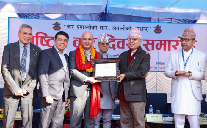 काठमाडौँ। रेमिटेन्स तथा मनि ट्रान्सफर व्यवसाय सञ्चालन गर्ने कम्पनीहरू मध्ये आइएमई लिमिटेड सर्वाधिक कर तिर्ने कम्पनीका रूपमा सम्मानित भएको छ। राष्ट्रिय कर दिवस २०८२ का अवसरमा सोमबार काठमाडौँमा आयोजित विशेष समारोहमा अर्थमन्त्री रामेश्वर प्रसाद खनालले आइएमई लिमिटेडका प्रमुख कार्यकारी अधिकृत दिवाकर पौडेललाई उक्त सम्मान प्रदान गर्नुभयो।