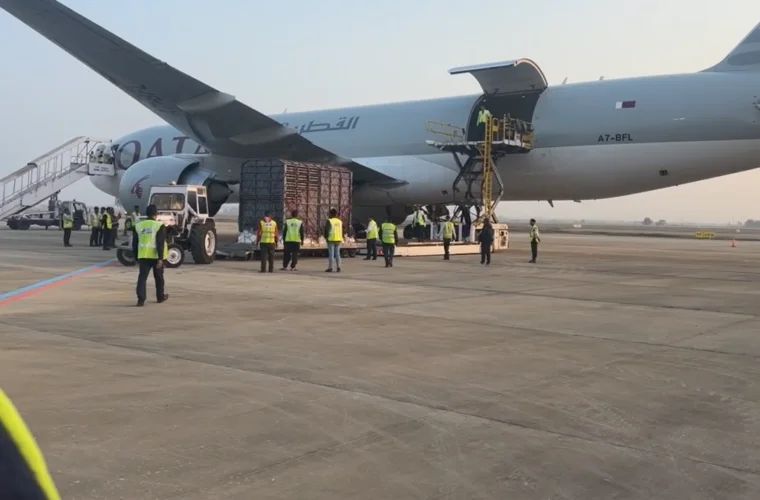 दुई हात्ती लिन गौतमबुद्ध अन्तर्राष्ट्रिय विमानस्थलमा कतार एयरको कार्गो जहाज आएको थियो ।