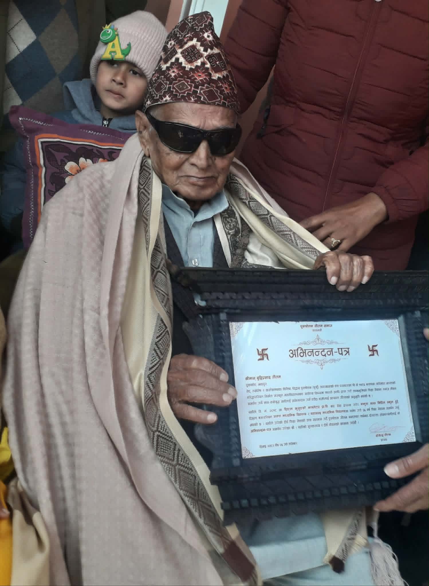 यहाँले वि. सं. २०१८ मा दिंला कुलुड.को काम्लेटार प्रा. वि.बाट सेवा प्रारम्भ गरेर मझुवा सन्त मिडिल स्कूल हुँदै दिड.ला बजार स्थित अरुण माध्यमिक विद्यालय र षडानन्द माध्यमिक विद्यालयमा समेत गरी ३६ वर्ष शिक्षा सेवामा समर्पण गर्नु भएको छ । यहाँले गरेको दीर्घ शिक्षा सेवाको उच्च सम्मान गर्दै पुरुषोत्तम गौतम सामाजका तर्फबाट दोसल्ला ओढाएर यहाँलाई यो अभिनन्द—पत्र सर्मपण गरेका छौं। यहाँको सुस्वास्थ्य र दीर्घ जीवनको कामना गर्दछौं ।