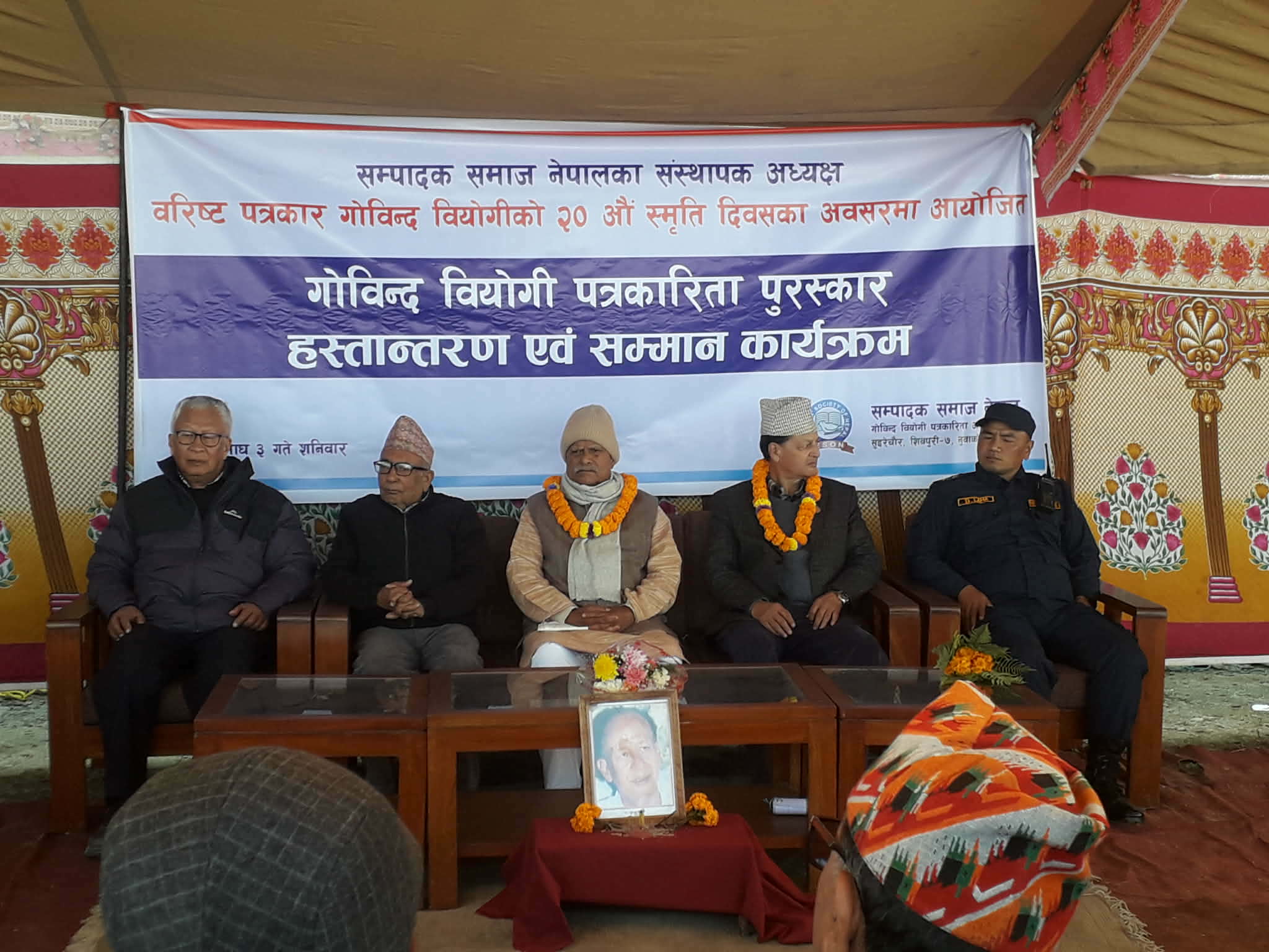 सम्पादक समाज नपालले विगतमा झैं आज पनि नुवाकोटको सुईरेचौर शिवपुरी ७ स्थित गोविन्द वियोगी पत्रकारिता अध्ययन केन्द्रमा सम्पादक समाज नेपालका सस्थापक अध्यक्ष तथा बरिष्ट पत्राकार गोविन्द वियोगिको २० औं स्मिृति दिवसका अवसरमा एक भव्य कार्यक्रमको आयोजना गरी गोविन्द वियोगी पत्रकारिता पुरस्कार हस्तारन्तरण तथा सम्मान कार्यक्रम सम्पन्न गरेको छ ।