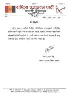 उक्त जानकारी पार्टीका प्रवक्ता तथा प्रचार विभाग प्रमुख मोहन कुमार श्रेष्ठले प्रेस विज्ञप्तिमार्फत सार्वजनिक गरेका हुन्।