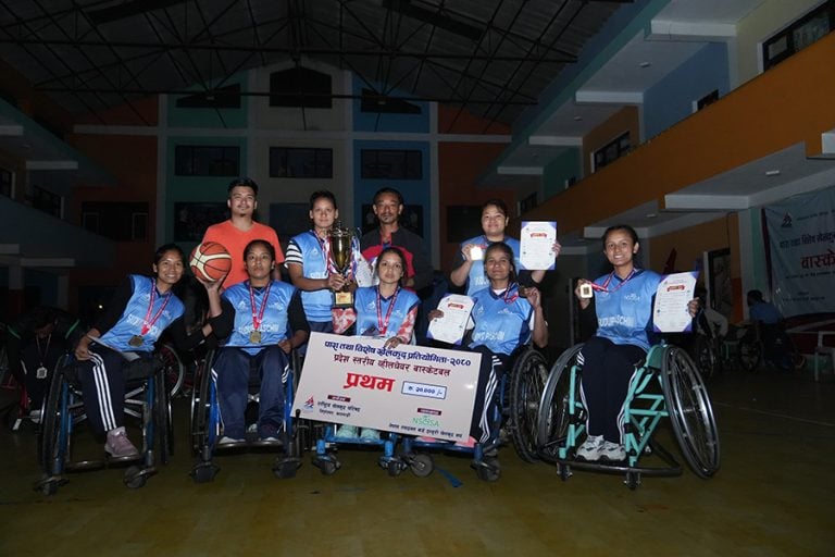 काठमाडौं । गोकर्णेश्वर न।पा। अत्तरखेलस्थित बौद्ध इन्टरनेशनल स्कुलमा सम्पन्न पारा विशेष खेलकुद प्रतियोगिता अन्र्तगत ह्वीलचियर बास्केटबलको उपाधि पुरुषतर्फ एपीएफ क्लब र महिलातर्फ सुदूरपश्चिम प्रदेशले जितेको छ । राष्ट्रिय खेलकुद परिषद् राखेपको आयोजना तथा नेपाल स्पाइनल कोर्ड इन्जुरी खेलकुद संघको व्यवस्थापनमा उक्त प्रतियोगिता सम्पन्न भएको हो ।