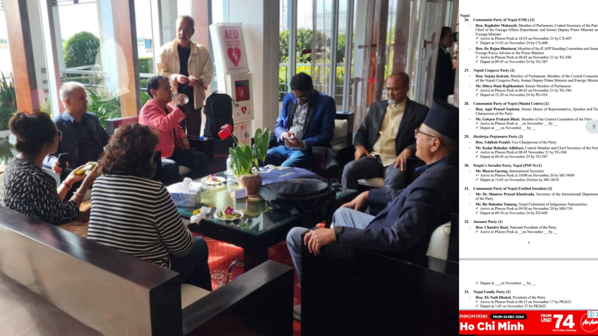 यसैगरी नेकपा एकीकृत समाजवादीबाट डा।शंकरप्रसाद खतिवडा र वीरबहादुर तामाङको नाम छ । यस्तै जनमत पार्टीका अध्यक्ष सीके राउत र परिवार दलका अध्यक्ष एकनाथ ढकालको नाम समेत सहभागीको सुचिमा छ । यस्तै जसपाबाट भरत गुरुङको नाम समावेस छ । उनीहरु केही आज कम्बोडिया पुग्दै छन ।