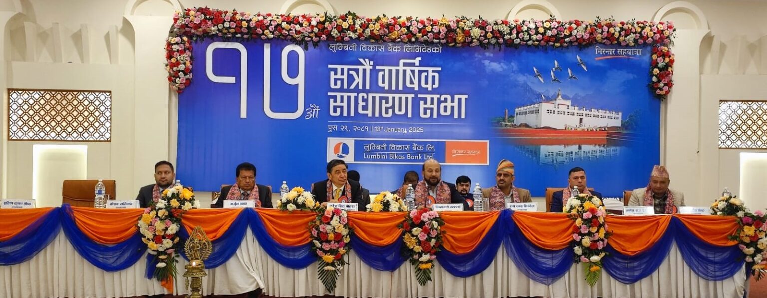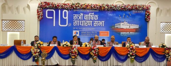 काठमाडौं । लुम्बिनी विकास बैंक लिमिटेडले हालै १७औं वार्षिक साधारण सभा सम्पन्न गरेको छ । बैंकका अध्यक्ष चिन्तामणी भट्टराईको अध्यक्षतामा उक्त सभा ले